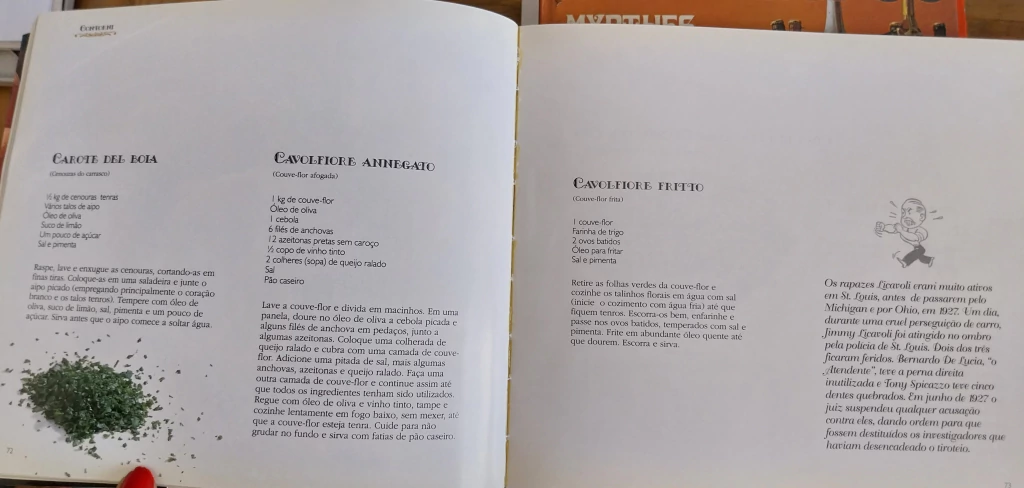 Esta obra contém mais de 150 receitas que o autor registrou numa caderneta, aliando ao conhecimento gastronômico um humor cáustico que mistura tiroteios, prostituição e jogo a tomates, frutos do mar e azeite, em saborosas anotações sobre as atividades de seus clientes muito especiais. A edição brasileira mantém integralmente as histórias e as receitas, interpretadas por grandes nomes da gastronomia brasileira.
